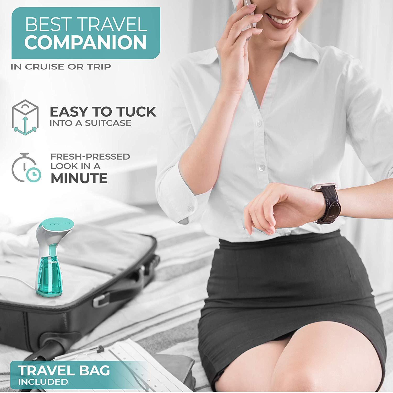 - BEST TRAVEL COMPANION - Compact and Portable Handheld Steamer is Easy to tuck into a suitcase. It produces continuous steam from its large water tank (4oz.) for using at HOME or while TRAVELING